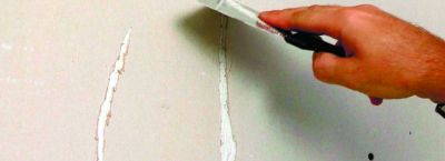 Особое внимание уделяют армирующей ленте. Стеклохолст шириной 50 мм обладает достаточной прочностью и не дает шпаклевке растрескаться.