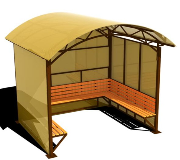 Арочная, покатая. Профильная труба 40х20х3 мм. Сотовый поликарбонат, толщиной 10 мм, цвет желтый. |